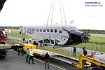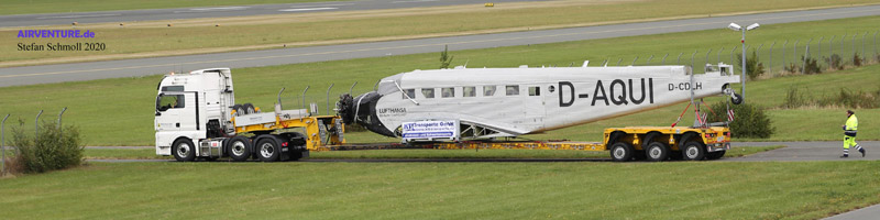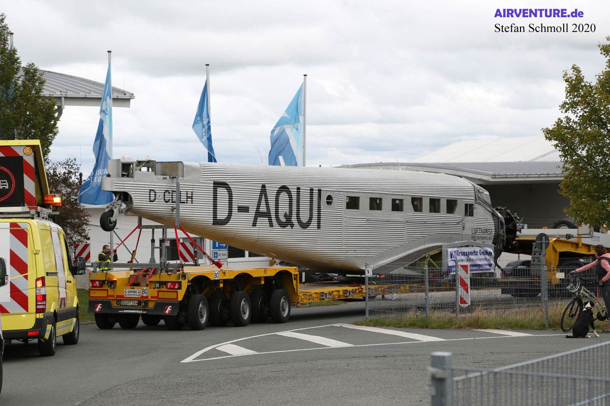 In aller Frühe setzte sich in Bremen am Samstag, den 26. September ein Konvoi aus fünf Schwertransportern nebst mehreren Begleitfahrzeugen in Bewegung, um den dort eingelagerten historischen dreimotorigen Airliner mit 18,5 Metern Länge und 29,25 Metern Spannweite zum Paderborn-Lippstadt Airport zu überführen. Noch am Nachmittag konnte der Rumpf der Junkers in den Glashangar der Quax-Flieger gerollt werden, wo er bereits ab dem kommenden Wochenende für die Besucher das Hauptausstellungsstück jetzt regelmäßig zugänglichen Sammlung bildet. Die mächtigen Flügel werden in den kommenden Monaten im angeschlossenen Haupthangar untergebracht, welcher ebenfalls besichtigt werden kann.