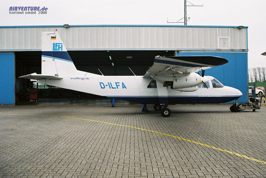 Die wichtigsten Flugzeuge in der Flotte der LFH, mit denen die Passagier-Linienflüge auf die Nordseeinseln durchgeführt werden, sind drei Maschinen vom britischen Typ Britten-Norman BN-2 Islander. |