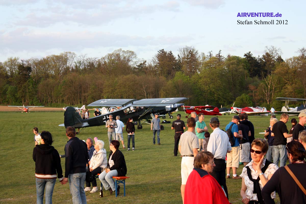 Die Gratulanten sind natürlich nicht nur mit Stieglitzen angereist. Am Nachmittag war ein breites Feld der unterschiedlichsten Flugzeugtypen von Bücker Jungmann bis Piper Cub in Ober-Mörlen versammelt. |