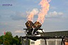 Wie bei einem Heißluftballon wird auch bei einem Heißluft-Luftschiff die für den Auftrieb nötige heiße Luft mit Flammenstößen aus speziellen Brennern erzeugt. Die beiden hier an der Luftschiffgondel befestigten Brenner haben eine Wärmeleistung von jeweils 3.600 PS und werden vor jedem Flug natürlich auf dem Boden erst noch einmal sorgfältig getestet. |