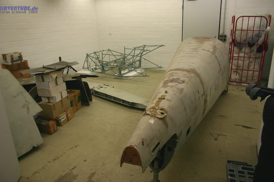 Noch ist es nur ein Sammelsurium aus Einzelteilen. Aber in einigen Jahren wird hieraus wieder eine fliegende Bücker 181 Bestmann. Die Maschine mit der Seriennummer 331396 gehört zu den letzten in Berlin Rangsdorf produzierten Exemplaren des zweisitzigen Trainers. |