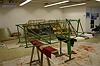 So langsam wird aus dem Puzzle der Einzelteile wieder ein richtiges Flugzeug. Der Stahlrohrrumpf der Tiger-Moth ist bereits fertig und wartet darauf, wieder mit dem Innenleben vereint zu werden. Im Hintergrund können Sie die Holztragflächen des Trainers erkennen. |
