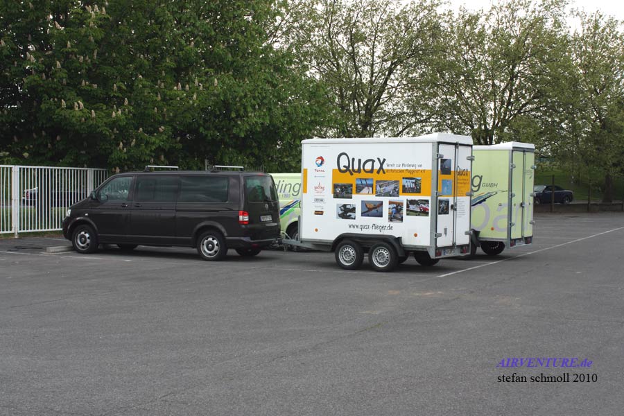 ... und steigt schon nach wenigen Minuten wieder in die Luft. In Dortmund sind die Bodentruppen der Quax-Flieger angekommen, um die Ersatzteilkisten zu entladen.