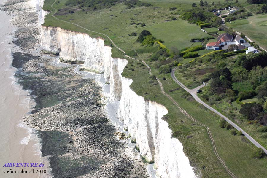 Tja, und die Überführung war auch nicht ohne Highlights. In zwei Stunden flogen wir von Old Warden nördlich von London durch das pittureske Kent über die berühmten Kreidefelsen von Dover - was für ein Anblick!! |