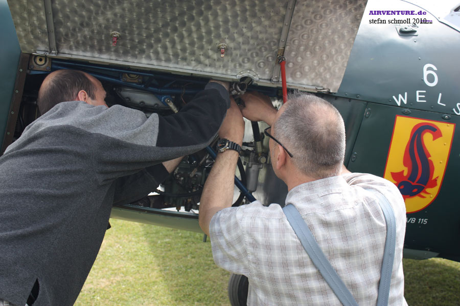 Vor dem endgültigen Erwerb der Maschine wurde die Bestmann durch unseren Flugzeugmechaniker Dirk Wittwer auf Herz und Nieren geprüft. Denn neben sauberen Papieren ist eine saubere Technik selbstverständlich unerlässlich. |