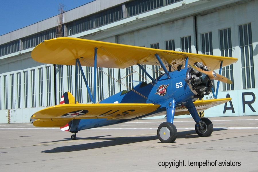 Ganz neu bei den Tempelhof-Aviators ist die Stearman D-EQAX - sie steht komplett für Schulung und Charter zur Verfügung. Sie können den praktischen Teil Ihrer PPL Schulung also von der ersten Stunde in diesem Spornradklassiker absolvieren. |