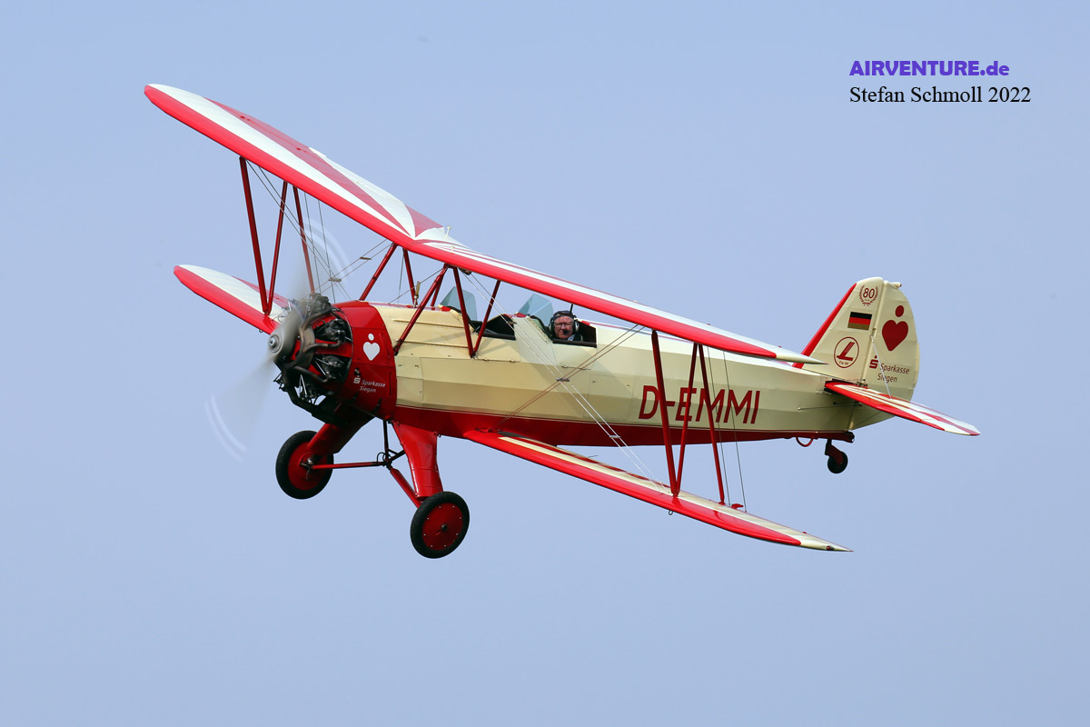 Ebenfalls zur Sterntaktflotte gehört der elegante Bücker Jungmann D-EDWD. Pilotiert wurde er an dem Wochenende von Jan Diehl, Friedrich Diehls Sohn. |