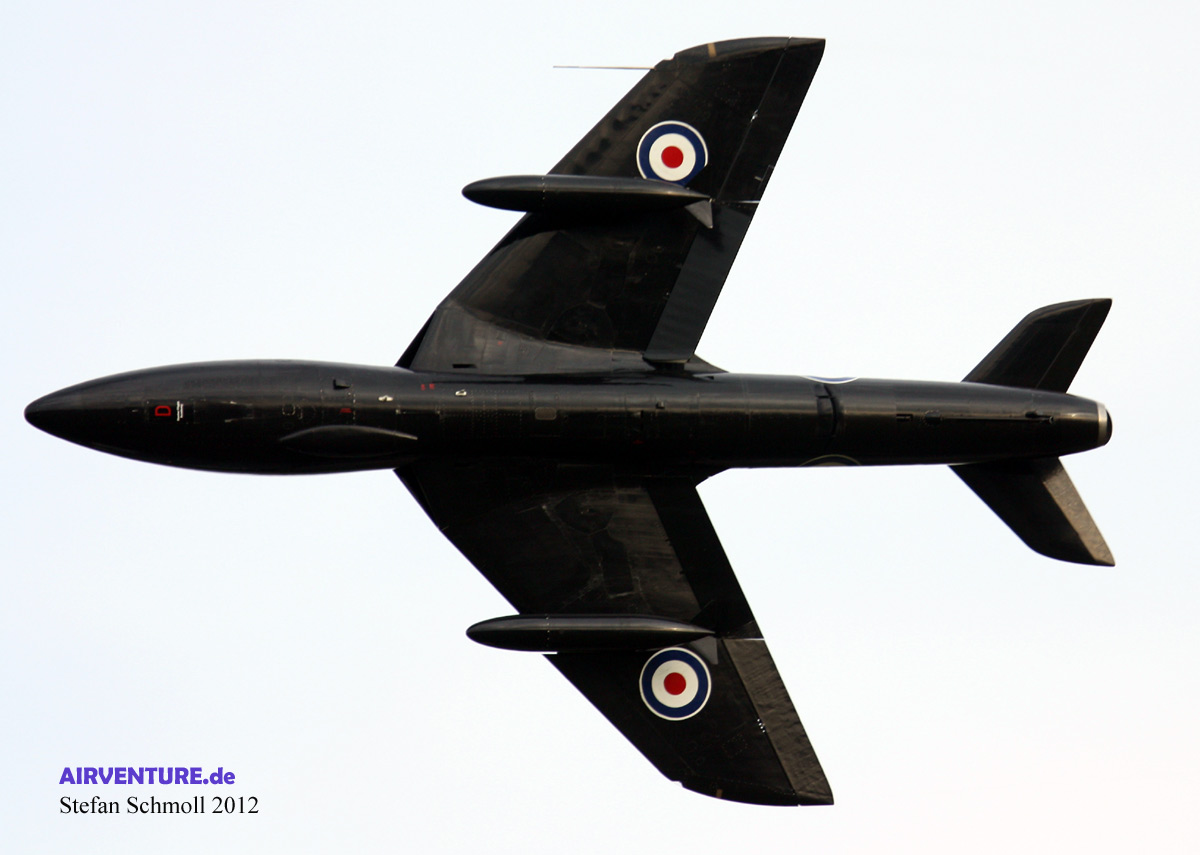 Sehr schnell und elegant war die Vorführung der komplett in Schwarz gehaltenen Hawker Hunter G-FFOX. In ihrer Dynamik erinnerte sie einen beinahe schon an Vorführungen moderner F-16 Kampfflugzeuge. |