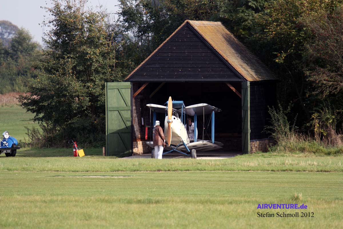 Und noch ein Jubiläum: 1932 erwarb Richard Shuttleworth seine DH-60X Moth G-EBWD und baute für sie diese schicke Garage. Auf diesem Flugzeug erlernte er das Fliegen und die Motte sie ist nunmehr seit 80 Jahren in Old Warden beheimatet. |
