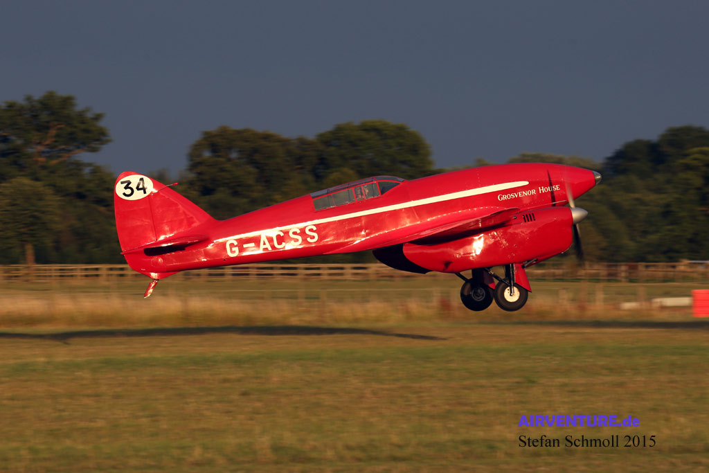Jeder hat so sein Highlight - dieses war mein ganz persönliches. Bei meinem letzten Besuch im Herbst 2012 waren die Fahrwerke noch nicht ganz fertig und der geplante Auftritt wurde kurzfristig abgesagt. Aber die de Havilland DH-88 Comet in diesem Licht starten zu sehen, daß hat auch die nochmalige Anreise nach Old Warden gelohnt! |