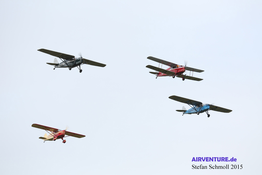 De Havilland DH-80 Puss Moth, DH-85 Leopard Moth und DH-87 Hornet Moth gemeinsam mit der Wicko. Alle Maschinen haben den berühmten de Havilland Gipsy Major Motor installiert. |