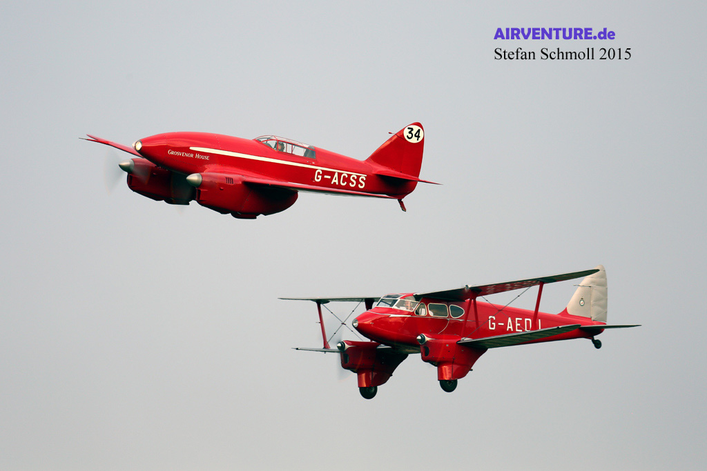 Und nicht genug, dass die einzige weltweit erhaltene DH-88 Comet vorgeflogen wurde. Sie wurde begleitet von der DH-90 Dragonfly. Von diesem frühen Geschäftsreiseflugzeug sind zwei Exemplare erhalten geblieben - das andere allerdings in Neuseeland! |