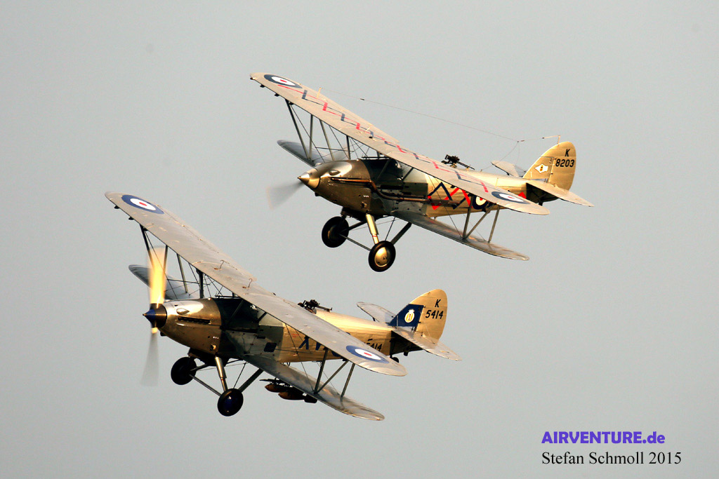 Neben den Gastflugzeugen haben natürlich auch die britischen Klassiker der Sammlung ihren Auftritt. Hier die Paarung Hawker Sea-Hurricane und Gloster Gladiator. |