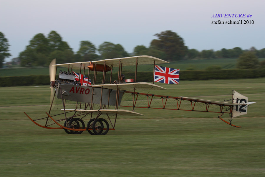 Zu später Stunde gab es das Highlight der Veranstaltung - die Edwardians der Sammlung bekamen Luft unter den Flügeln. Begonnen wurde mit der für den Film "Die tollkühnen Männer in ihren fliegenden Kisten" nachgebauten Avro Triplane. Der für den 1965 produzierten filmischen Klassiker entstandene Nachbau wurde von den damaligen Verantwortlichen der Shuttleworth Collection als würdig angesehen, um in die Sammlung aufgenommen zu werden. |
