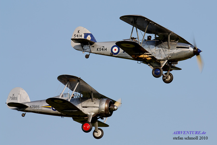 Hawker Hind & Gloster Gladiator gemeinsam am Himmel - über Jahrzehnte konnte man diesen Anblick nur hier in Old Warden bewundern. In den letzten Jahren wurden in Großbritannien glücklicherweise gleich mehrere der Hawker Doppeldecker und auch eine Sea Gladiator wieder flugfähig restauriert, so dass es seit einiger Zeit über Old Warden und dem nicht weit entfernten Duxford sehr interessante Formationen zu bestaunen gibt. |