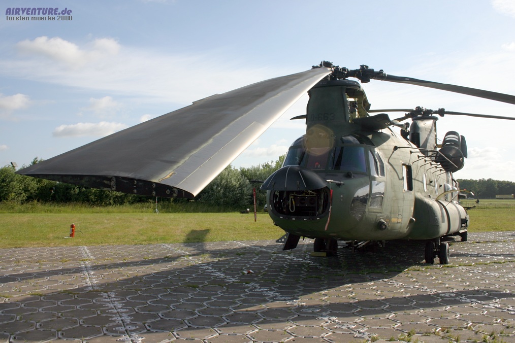 Die Boeing CH-47 Chinook durfte im static display der RNLAF natürlich nicht fehlen. Aber auch im flying display durfte die Chinook Ihre Fähigkeiten als Feuerlöscher beweisen. |