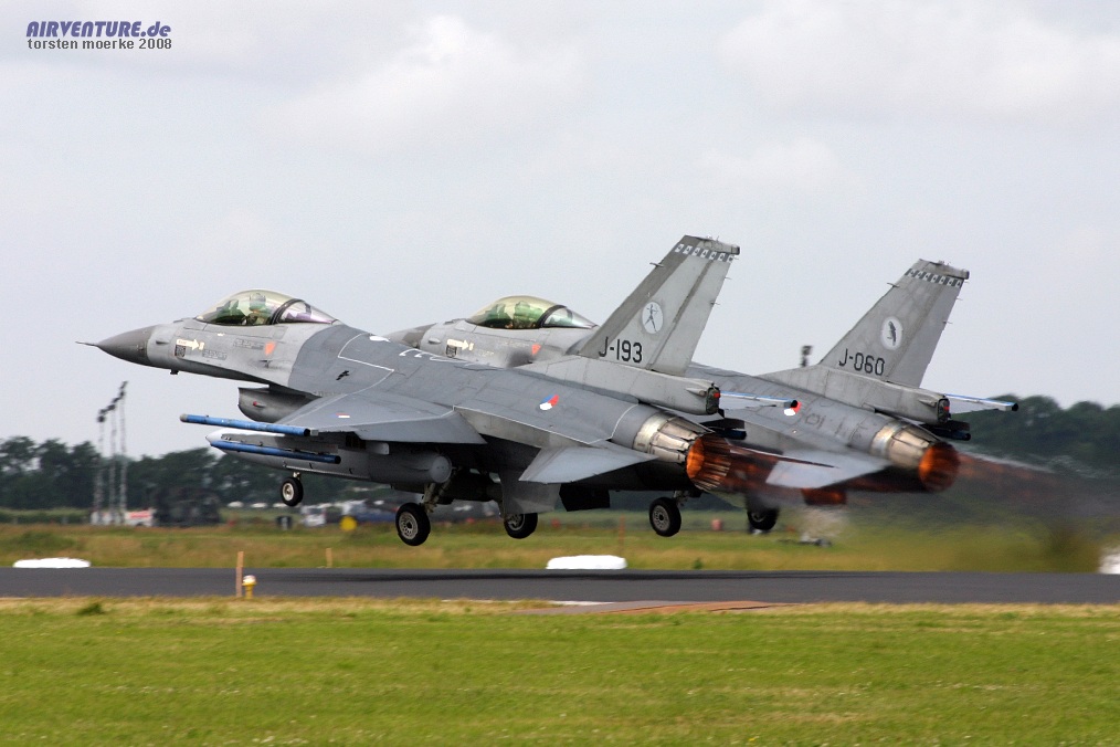 Im Gegensatz zu der Luftwaffenbasis Volkel, starten die Niederländischen F-16 in Leuwarden in Formation zu Ihrer Airstrike Vorführung. |