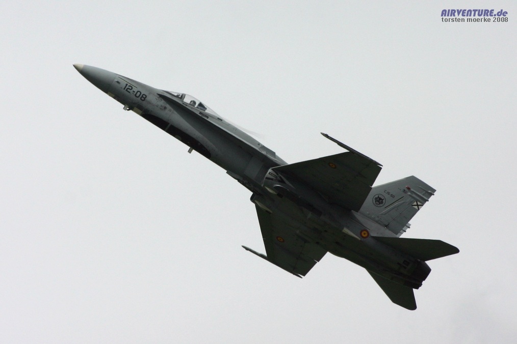 Das Spanische F-18 Demoteam ist ein bekannter Teilnehmer der Open Dagen und konnte (geflogen von Major Fernando Torres) die Zuschauer erneut begeistern. |