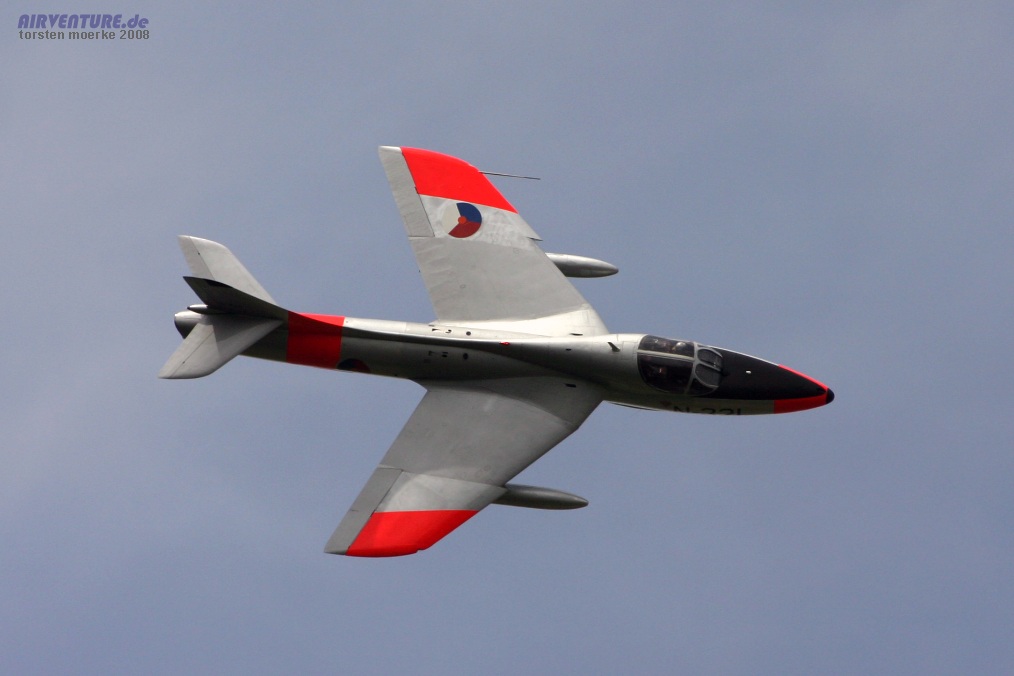Die Hawker Hunter N-321 der Stichting Hawker Hunter Foundation war ursprünglich als XF-357 bei der Royal Air Force im Dienst und wurde im Mai 2007 nach Leuwarden überführt. |