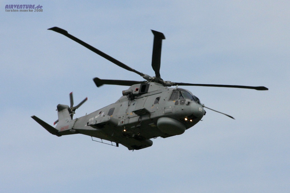 Die Agusta Westland EH101 Merlin, eine Gemeinschaftsproduktion von Großbritannien und Italien, hat sich mittlerweile Weltweit als mittlerer Transporthubschrauber durchgesetzt. Bei den Open Dagen 2008 wurde eine Maschine der Royal Navy gezeigt. |