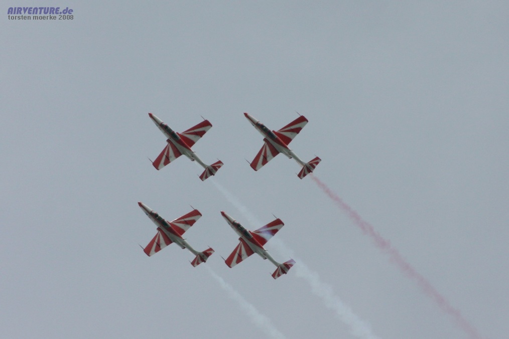 Die geflogenen Figuren bestechen durch Ihre Präzision und unterstreichen den Anspruch, das weltweit beste Kunstflugteam zu sein. Selbst das abgespeckte FT Programm war eindrucksvoller als manche komplette Vorstellung anderer Kunstflugteams. |