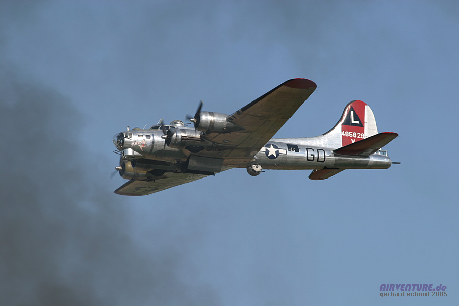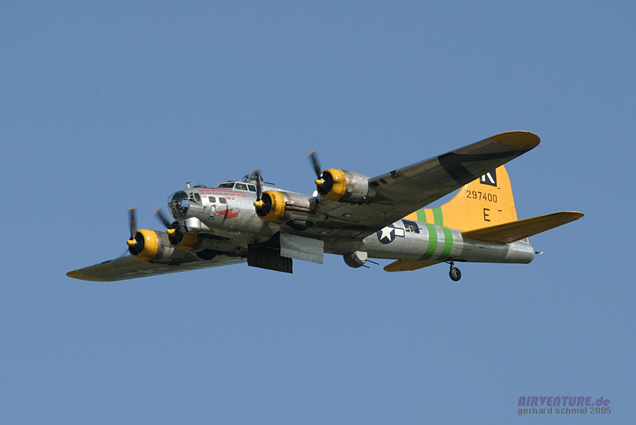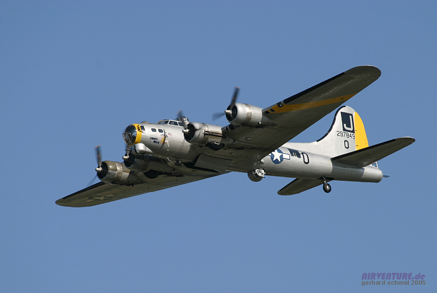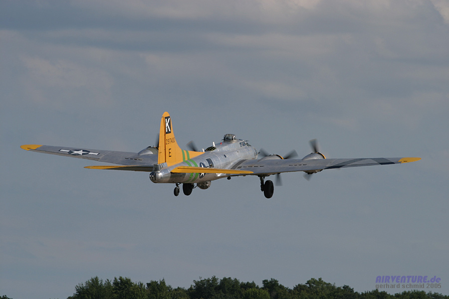Fortress right after take off. The machine carries the painting of a B-17G, crashed on