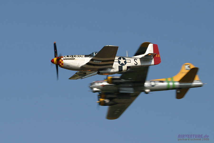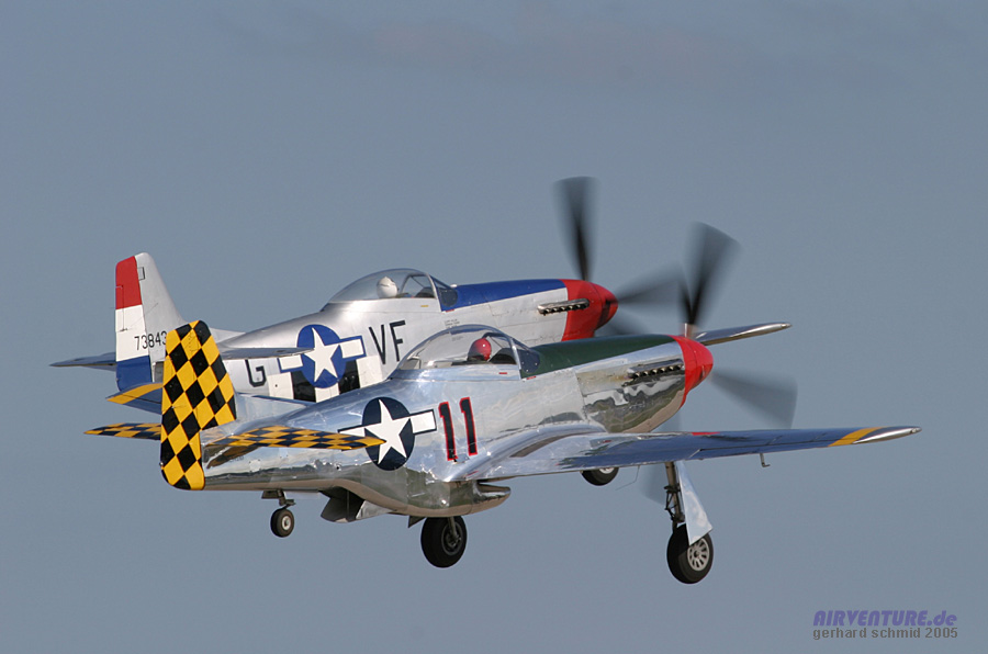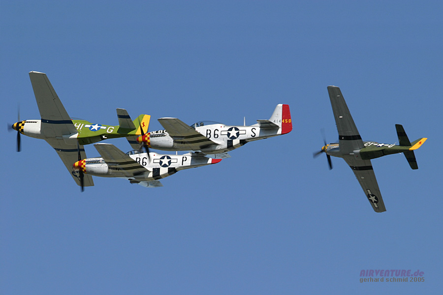 American P-51D "mustangs" fly an escort patrol over the formation. |