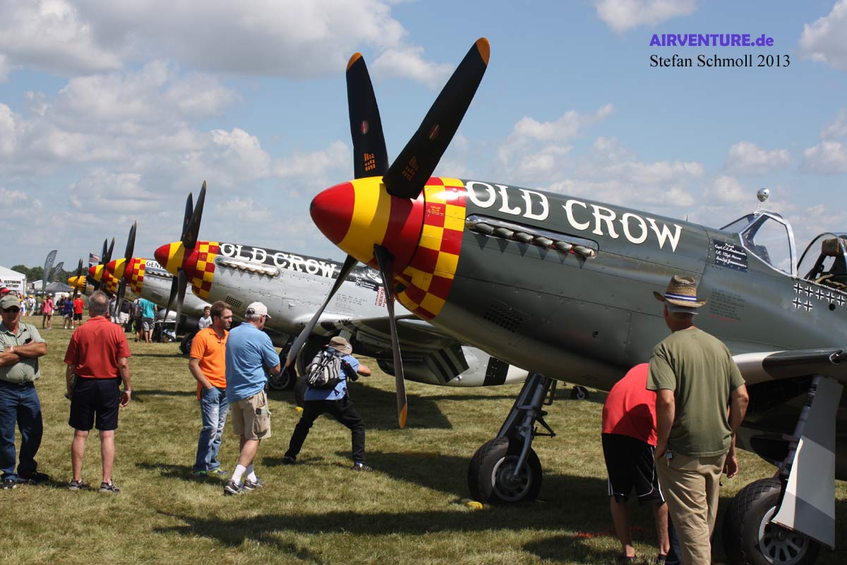 Egal ob Morgens um 7:30 oder Abends nach der Show: Mustangs waren oft in der Luft über Oshkosh. Während der täglichen Airshow fegten nicht selten acht oder zehn Exemplare gleichzeitig über die Bahn. |