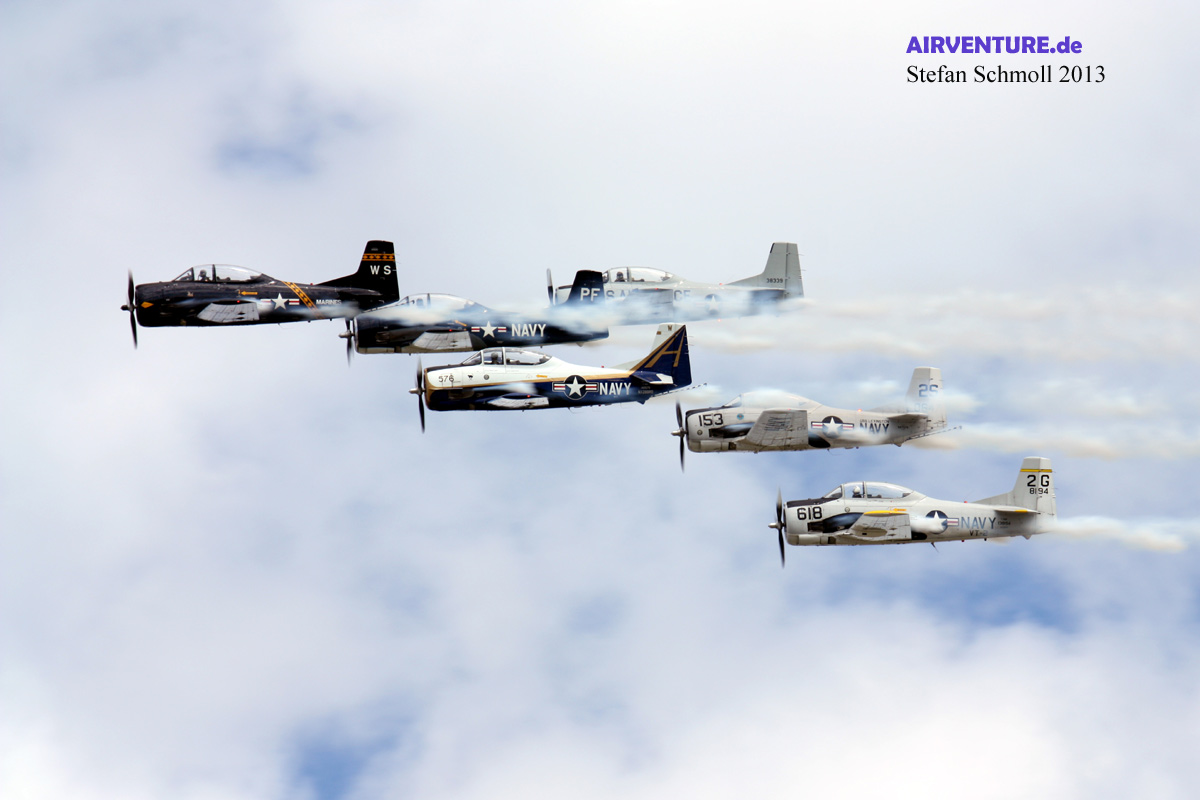 Dutzende North-American T-28 Trojan flogen während der Airshows über das Gelände von Oshkosh. Von dem mächtigen Nachfolger der weltberühmten T-6 wurde knapp 2000 Exemplare zwischen 1950 und 1957 gebaut.