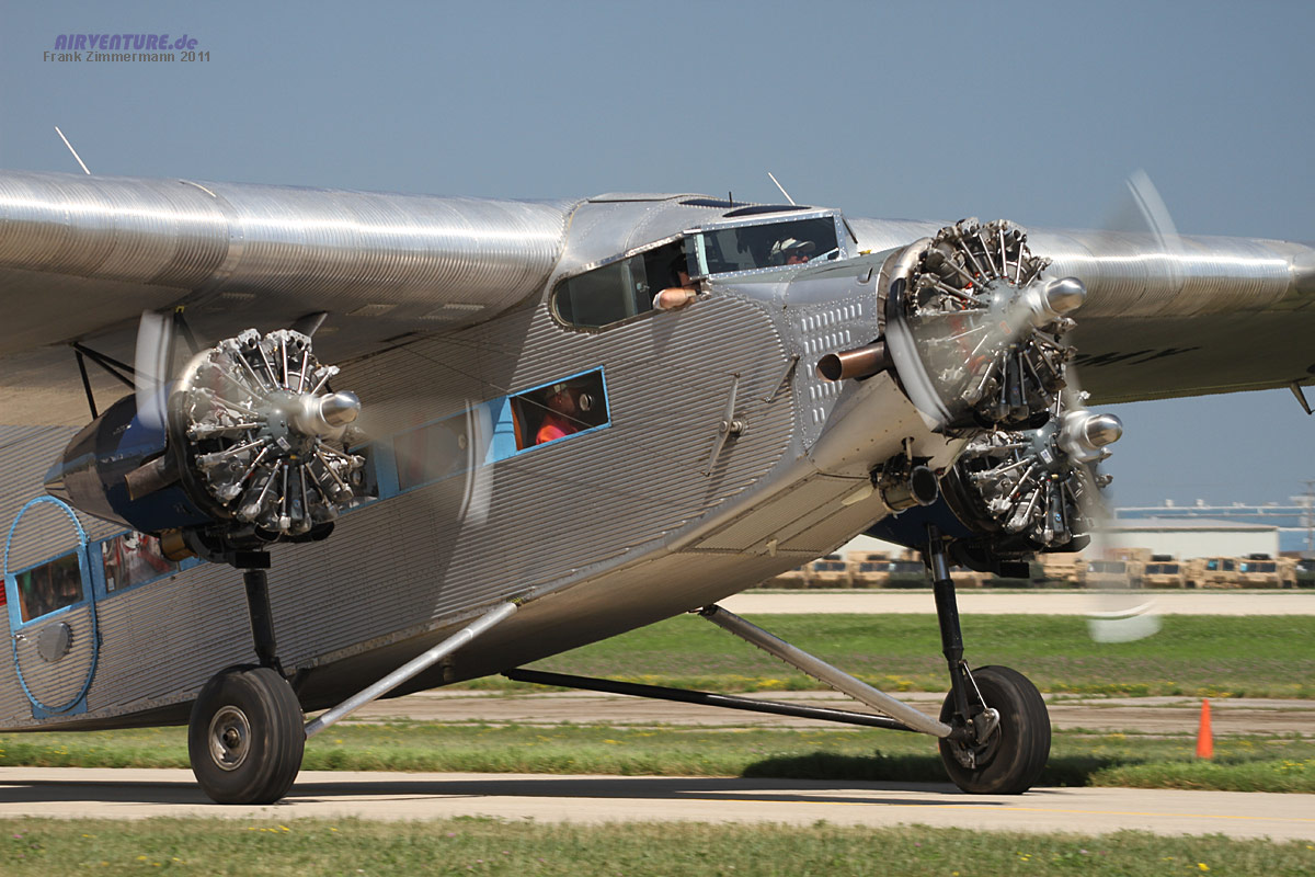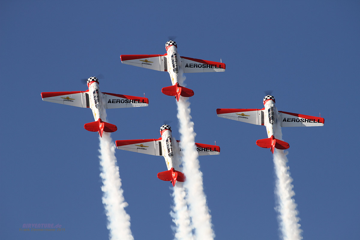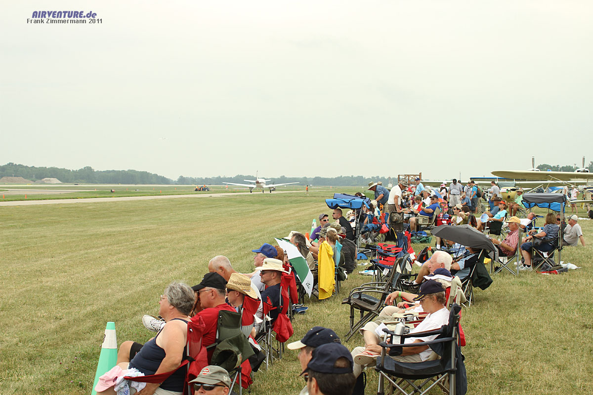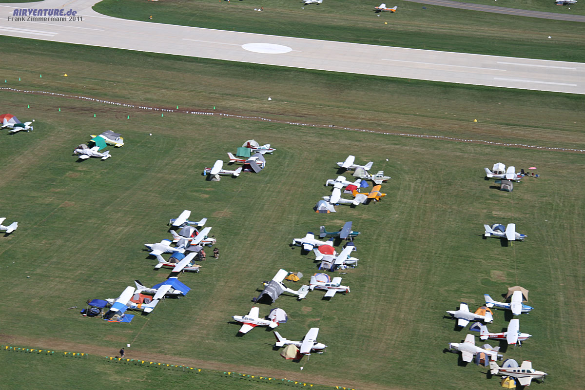 EAA AirVenture Oshkosh 2011 - von Frank Zimmermann - Jedes Jahr im Sommer öffnen sich die Tore des Wittman Regional Airport in Oshkosh zu einem weltweiten Highlight in der Fliegerszene, dem größten Flugfest der Welt, gemessen an den teilnehmenden Flugzeugen und Zuschauern. Ob mit dem eigenen PKW, einem Camper - oder standesgemäß mit dem eigenen Flugzeug - hunderttausende Luftfahrtbegeisterte pilgerten in der letzten Juliwoche 2011 zum legendären Treffen der Experimental Aircraft Association. Wegen teilweise ungünstigen Wetters erreichten die Besucherzahlen nicht ganz die Zahlen des Vorjahres 2010, wo immerhin 900.000 Menschen dem 7-tägigen Spektakel beiwohnten. Dennoch konnte das Wetter viele Camper nicht davon abhalten unter ihren Flugzeugen zu campieren, indem einfach eine Plane über die Tragfläche gelegt wird - fertig ist das Zelt. Das AirVenture in Oshkosh ist nicht nur eine Flugshow im eigentlichen Sinne sondern auch ein Fest für die ganze Familie. Ob Bastelworkshop für die "Kleinen" oder Rockkonzert (REO Speedwagon) für die "Großen", es war für eden etwas geboten. Auch werden Kinofilme von bekannten Schauspielern präsentiert - wie Harrison Ford, der ja selbst Pilot ist und in Zusammenarbeit mit der EAA im "Young Eagles" Programm Nachwuchswerbung betreibt. Da geht man doch gerne ins Kino, natürlich nicht nur um eine so bekannte Person mal aus der Nähe zu sehen... In Amerika ist es weit verbreitet, dass man sich sein eigenes Flugzeug zusammenbaut. Die EAA vereinigt all diese "Homebuilder" und schaffte so ein riesiges Netzwerk zum Erfahrungsaustausch. Das AirVenture ist die alljährliche Messe, auf der sich dann Fachmann, Hersteller und Bastler zum Fachsimpeln zusammenfinden. Wie nietet man eine Aluminiumaußenhaut? Wie bespannt man Ruderflächen mit Stoff? Viel Wissenswertes wird in dutzenden Workshops an den Mann bzw. Frau gebracht. Und es wird viel verkauft. Von der Zündkerze bis zum kompletten Flugzeugbausatz. Traditionell werden im Rahmen der Veranstaltung auch Personen geehrt, die sich in der Fliegerei einen Namen gemacht haben. Dieses Jahr wurde Burt Rutan geehrt. Burt Rutan entwickelte mit seiner Firma Scaled Composites zahlreiche ebenso außergewöhnliche wie spektakuläre Flugzeuge wie die Vary-Eze, Voyager oder die Spaceships für suborbitale Ausflüge, um nur die wichtigsten zu nennen. Zwei von seinen Konstruktionen, die Boomerang und das in Serie gebaute, revolutionäre, jedoch kommerziell nicht erfolgreiche Beech Starship, waren am Himmel über Oshkosh zu sehen. Der über 90jährige Bob Hoover, Weltkriegs-Jagdflieger Rekordpilot und unumstritten eine faszinierendsten Persönlichkeiten der Luftfahrtgeschichte überhaupt, war ebenfalls zu Gast. Ein Tag stand ganz im Zeichen dieses Aviation Superstars. Keine Frage, dass natürlich auch Flugzeuge die Bob geflogen bzw. getestet hatte mit ins Flugprogramm aufgenommen wurden. Mit Chuck Yeager und Bud Anderson waren zwei Top-Asse der USAF in Oskosh. Sie flogen im selben Geschwader und hatten nach dem Krieg ähnliche Karrieren als Testpiloten auf der berühmten Edwards Air Force Base. 2011 stand auch für ein weiteres Jubiläum, nämlich 100 Jahre Navy Fliegerei. Als Vertreter der See-gestützten Flugzeuge mehrerer Generationen flogen Corsair, Fury, Buckeye und selbstverständlich auch eine F-18 in der Heritage-Formation. Das Zeitalter der Navy Flugzeuge wurde eingeläutet als am 11. Januar 1911 eine Curtiss Ely Pusher zum ersten Mal eine Deckslandung auf der USS Pennsylvania machte. Zu den Highlights gehörten für mich die Überflüge der Warbirds. Mehrere P-51 Mustangs, P-38 Lightning, Jak-3 und T-28 präsentierten sich im Tiefflug begleitet mit viel Pyrotechnik und Feuer. Auch wurden mehrere Flugzeuge des Jet-Zeitalters auf die gleiche Weise in Szene gesetzt. Teilweise waren bis zu 30-40 Flugzeuge in der Luft. In einhundert Metern Höhe flogen Formationen von T-34 Mentors und etwas tiefer T-6 Texans und andere Schulflugzeuge. Wo sieht man schon solche Massenformationen. Es gab beim EAA AirVenture natürlich auch unzählige Zivilflugzeuge zu sehen, die Aufwartung des Boeing 787 Dreamliners war einer der Höhepunkte ziviler Luftfahrzeuge. Und auch Kunstflugteams gehören zu jeder richtigen Airshow. Seit vielen Jahren fest zum Programm gehören hier die exzellenten Piloten des T-6 Aeroshell-Teams. Als Jet-Formation war das Black Diamond-Team auf L-39 im Programm. Auf solch einem großen Luftfahrtspektakel treffen sich dann auch die Top-Aerobatikpiloten. Kent Pietsch, Kirby Chambliss, Skip Stuart und selbstverständlich Sean D. Tucker boten abwechselnd dem Publikum eine atemberaubende Show. Ein ganz besonderer Augenblick war für viele Besucher die Teilnahme der weltweit einzigen noch fliegenden Boeing B-29 Superfortress. Mehrere Jahre durch Motorenproblem gegroundet, wurde die Maschine 2011 wieder flügge und Oshkosh war der perfekte Ort um diese einmalige Maschine wieder in der Luft zu zeigen. Das ganze Spektakel gipfelte am Samstagabend in einer gigantischen Wall of Fire, bei der tausende Liter Sprit am Boden gezündet werden.