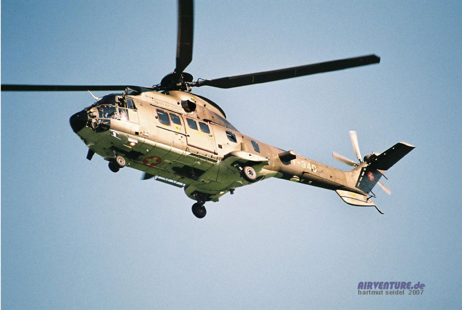 Zu den internationalen Gästen im Flugprogramm der Phalsbourg Heli-Airshow 2007 gehörte auch ein Transporthubschrauber vom Typ Eurocopter AS 532 Cougar von der Schweizer Luftwaffe, mit dem sehr beeindruckende Solo-Flugvorführungen gezeigt worden sind. |