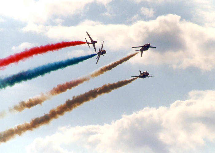 The Red Arrows are the official aerobatics team of the ROyal Air Force since 1964 and by today they participated at more than 3000 airshows in 53 countries worldwide - sometimes at places you would not expect to see them, like Zimbabwe or Pakistan.