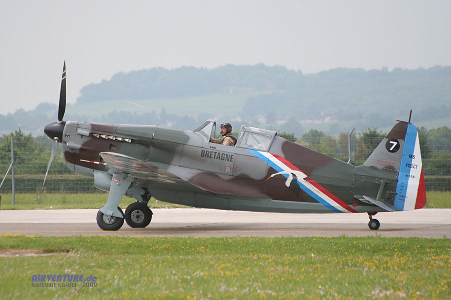 Die Warbirds des Zweiten Weltkriegs wurden im Flugprogramm des Meeting du Centenaire 2009 durch dieses französische Jagdflugzeug vom Typ Morane-Saulnier MS 406 repräsentiert. |