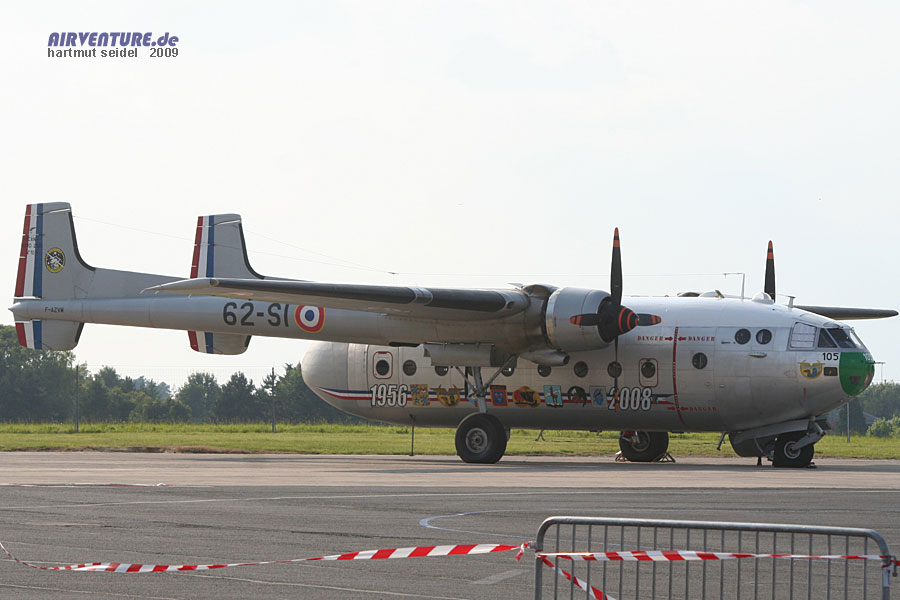 Eine besondere Rarität im Flugprogramm des Meeting du Centenaire 2009 war dieses Transportflugzeug vom Typ Nord 2501 Noratlas aus den fünfziger Jahren. Es wurden insgesamt über 400 Maschinen dieses Typs gebaut. Soweit bekannt ist die hier in Reims gezeigte Maschine der "Association Le Noratlas de Provence" die einzige heute noch flugfähige Noratlas, die es weltweit noch gibt. |