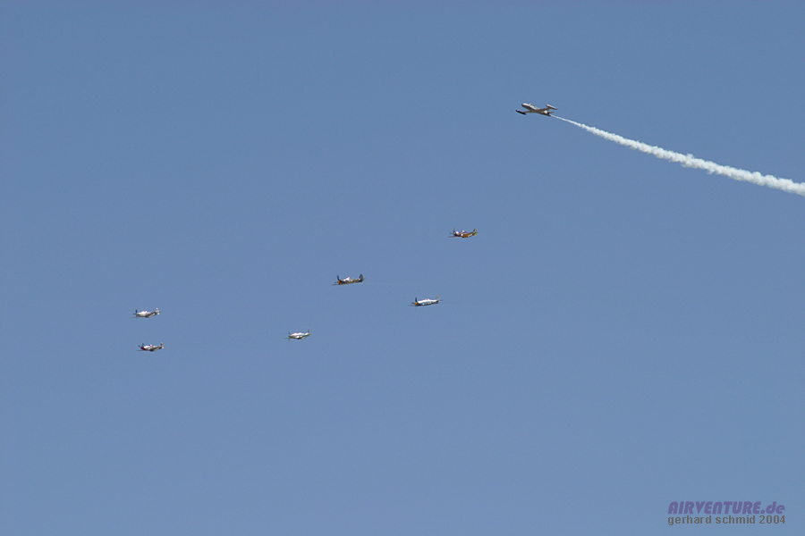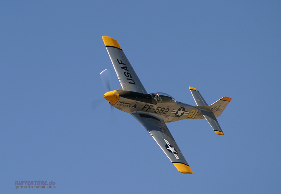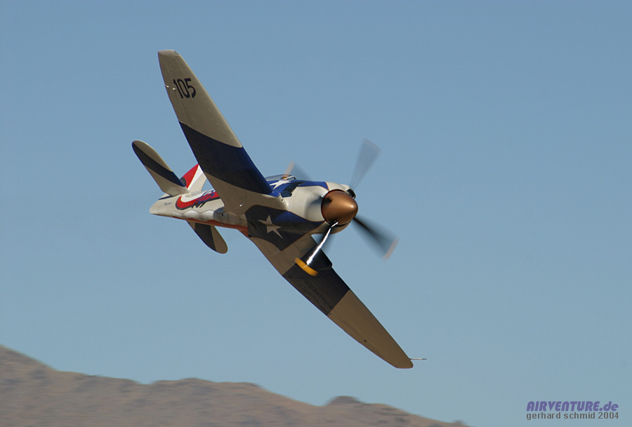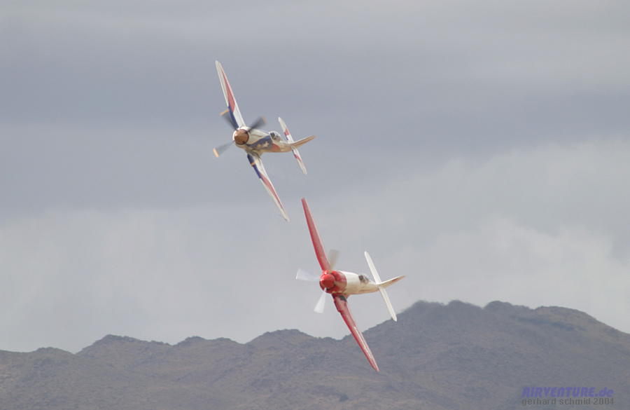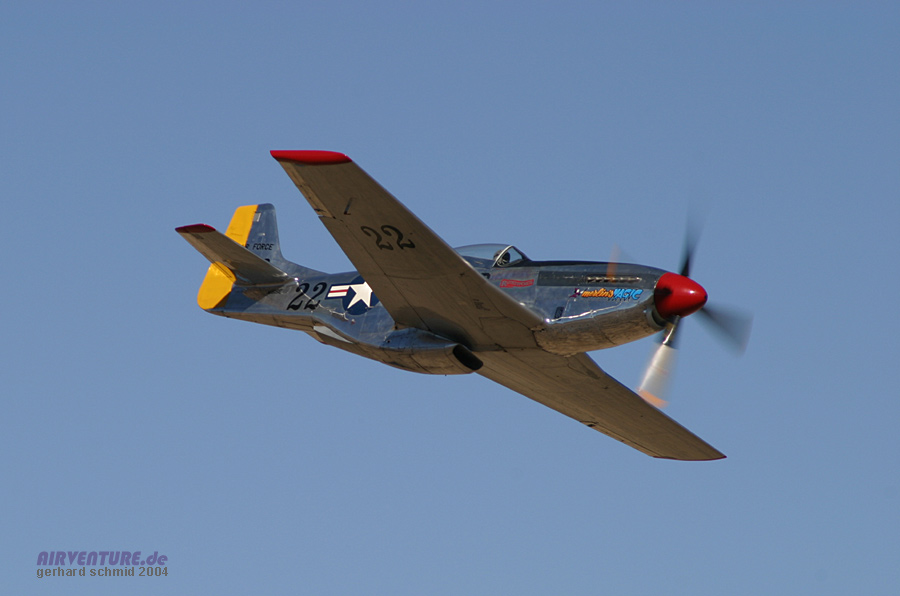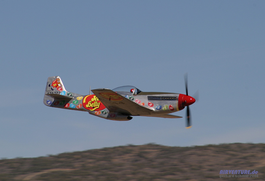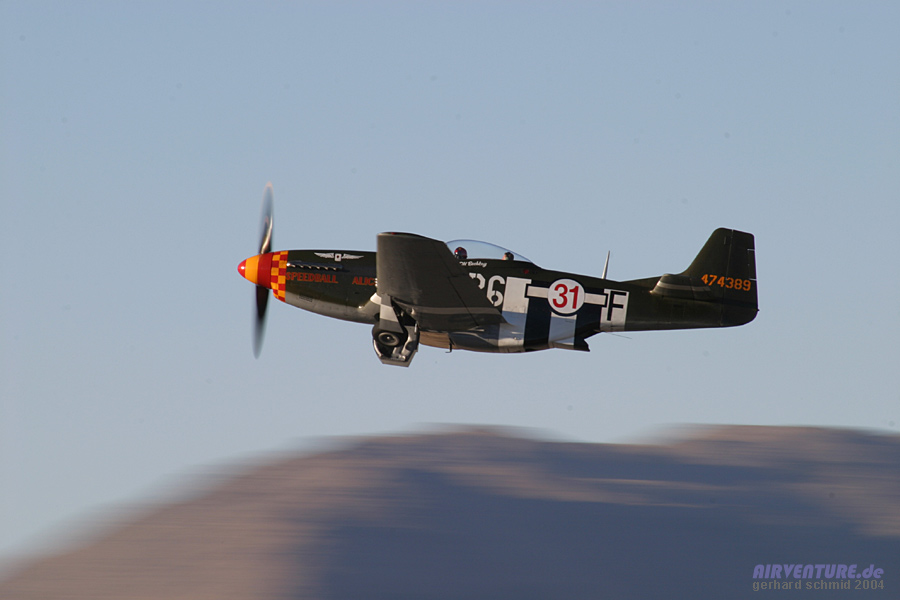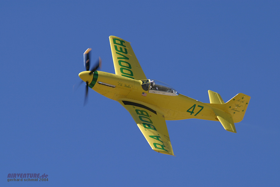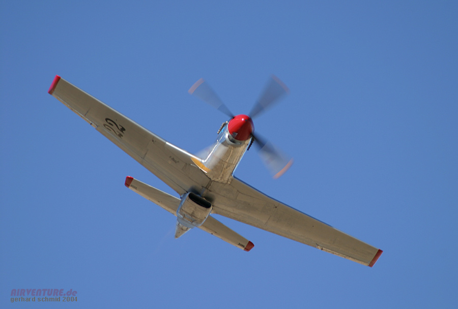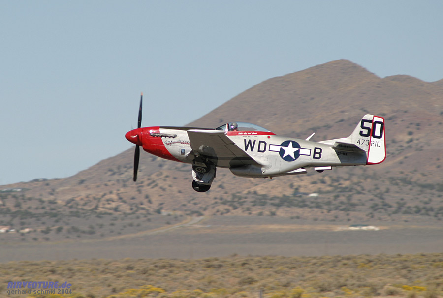 "eng und tief" gemeint ist. Im Hintergrund ist die stark modifizierte P-51D