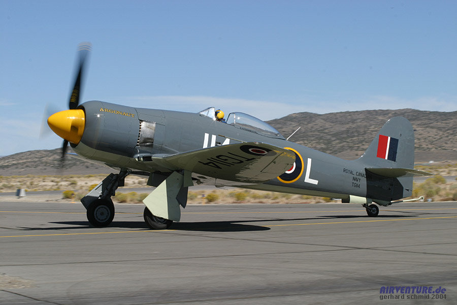 Hawker Sea Furies sind sie selbst dabei. Hier rollt Dennis Sanders mit