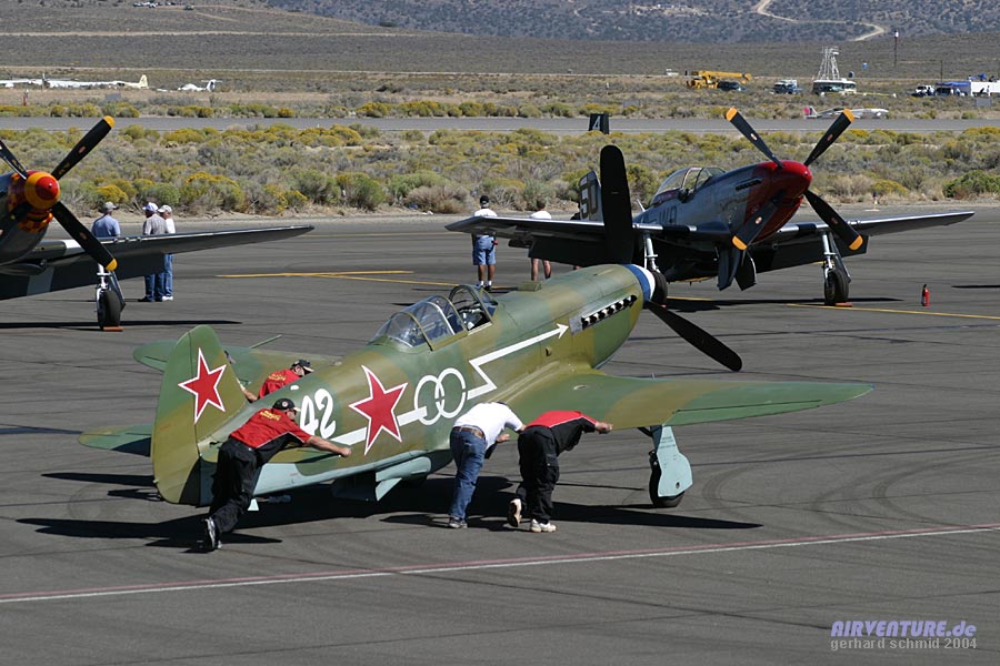 Mustang, Bearcat und Sea Fury sind die russischen Yak 9 im Teilnehmerfeld. Hier ist gerade
