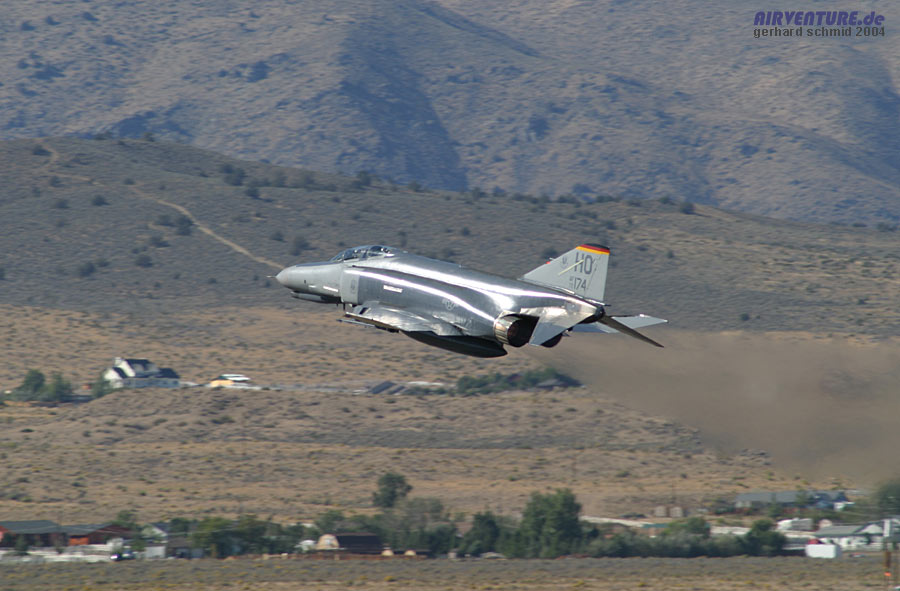 fliegt die lebende Legende bei Airshows - hier mit einer Phantom der Deutschen Luftwaffe,
