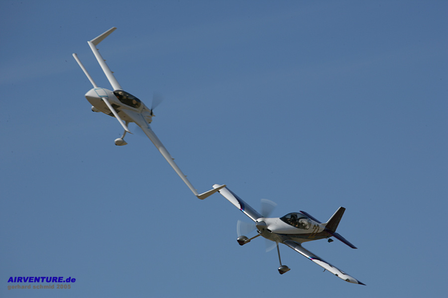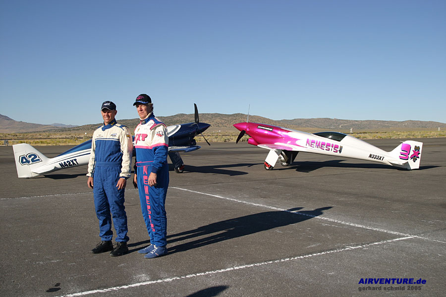 Piloten Greg Nelson auf Harmon Rocket (rechts) und Klaus Savier auf Vari Eze (links). |