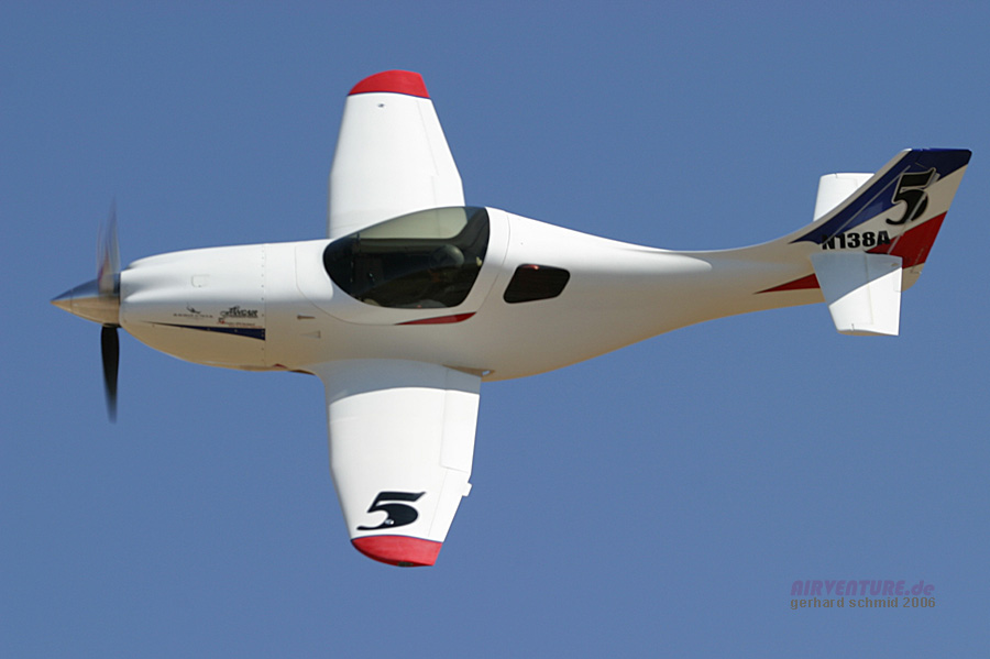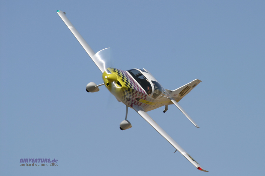 eigenwillig lackierten Lancair Legacy mit Vince Walker im Cockpit. 289,322 mph war er