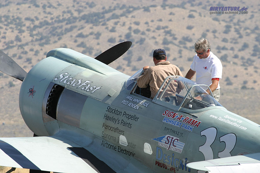 Teilnahme in einem Unlimited Race. Seine Yak-3U wurde erst kurz vor dem Rennen fertig,