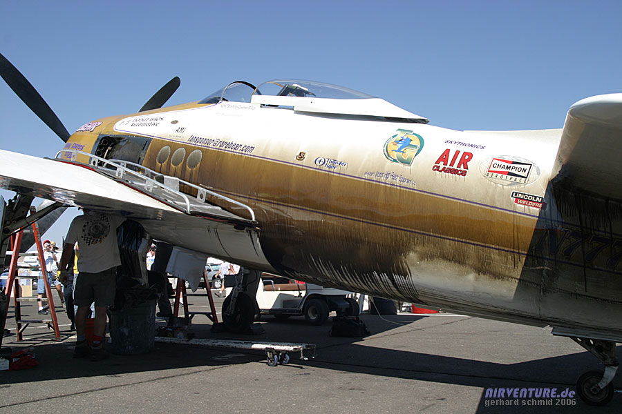 Yeller", das frühere Showflugzeug von Bob Hoover, wurde von John Bagley wieder zu