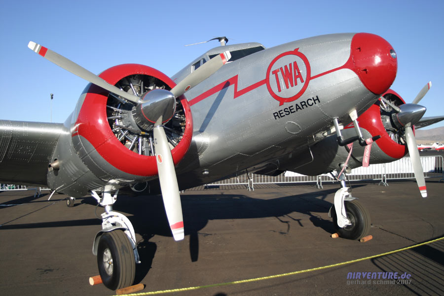 In der Tat ist diese Electra Junior das älteste Flugzeug der TWA. Sie wurde 1940 von Continental Airlines an die Transcontinental & Western Air ausgeliefert. |