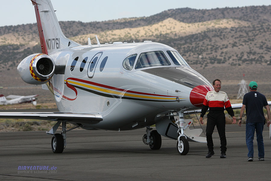 Robert "Hoot" Gibson hatte zwischen den Unlimited Races noch genügend Zeit, den Raytheon 390 Premier IA Jet vorzuführen. |