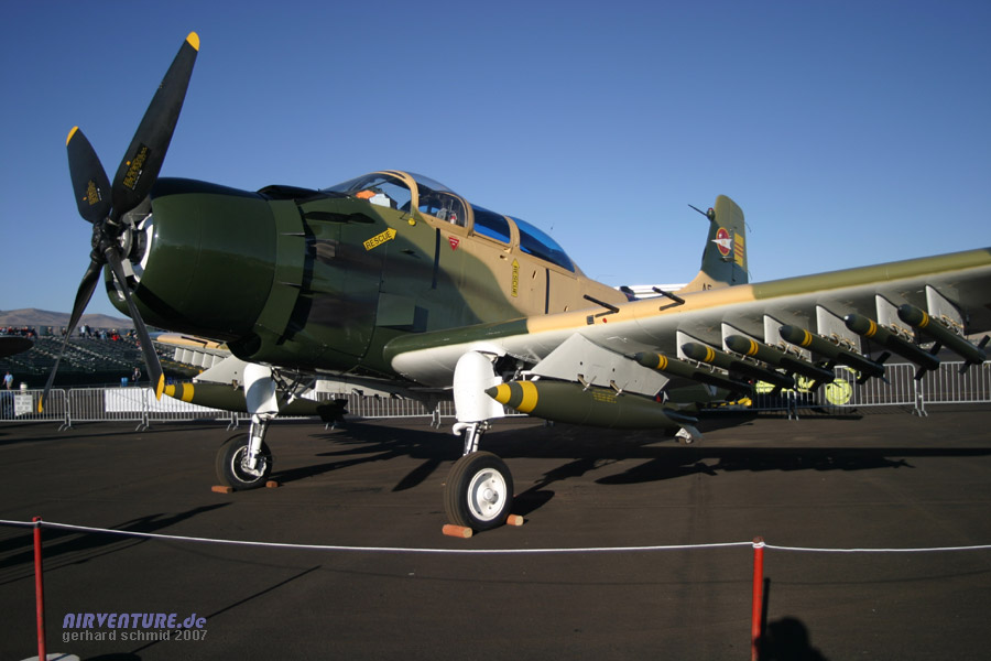 Eine der wenigen Douglas Skyraider AD-5 (A1-E) mit mehrsitzigem Cockpit hat Danny Summers aus Sugar City, Idaho mitgebracht. Noch dazu mit voller Bewaffnung... |