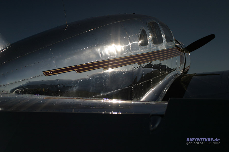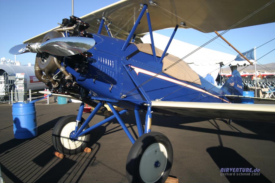 Die letzte flugfähige Vertreterin ihres Typs ist diese Travel Air 4-D. Liebevoll bis ins kleinste Detail restauriert, jedoch nicht "überrestauriert", wird sie präsentiert von Bruce McElhoe aus Kalifornien. |