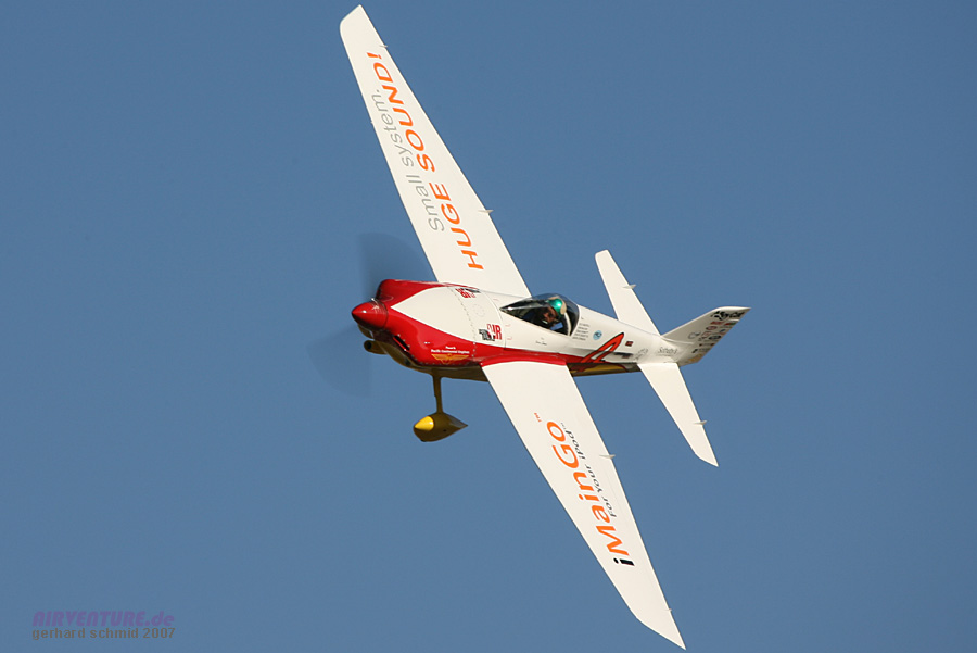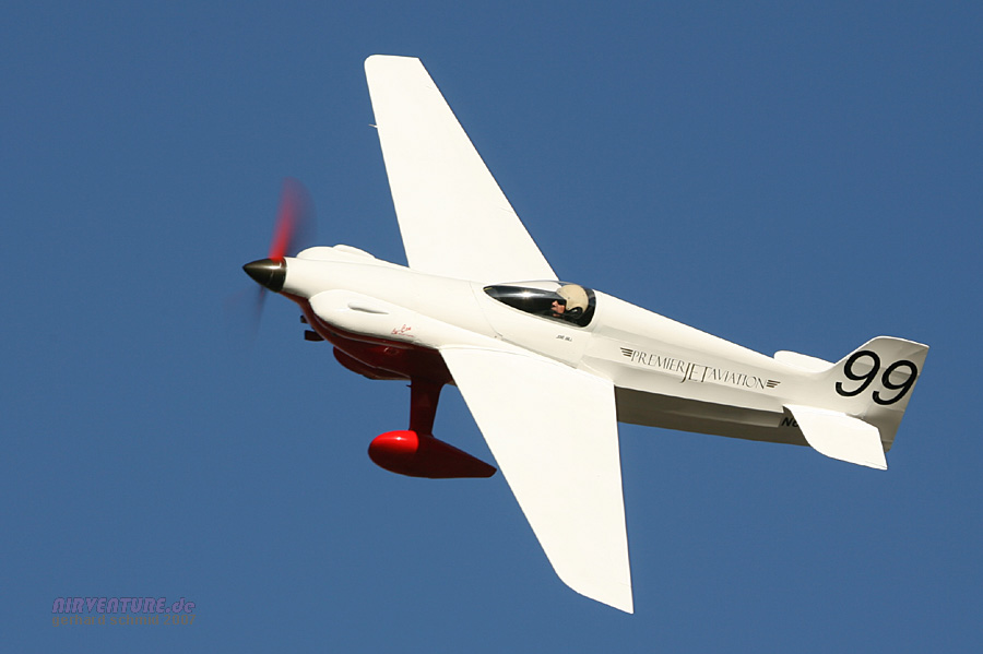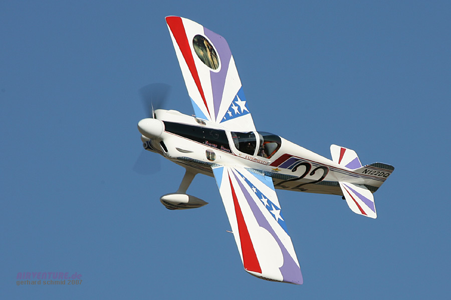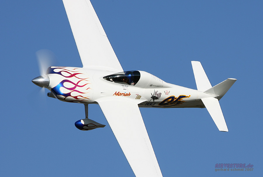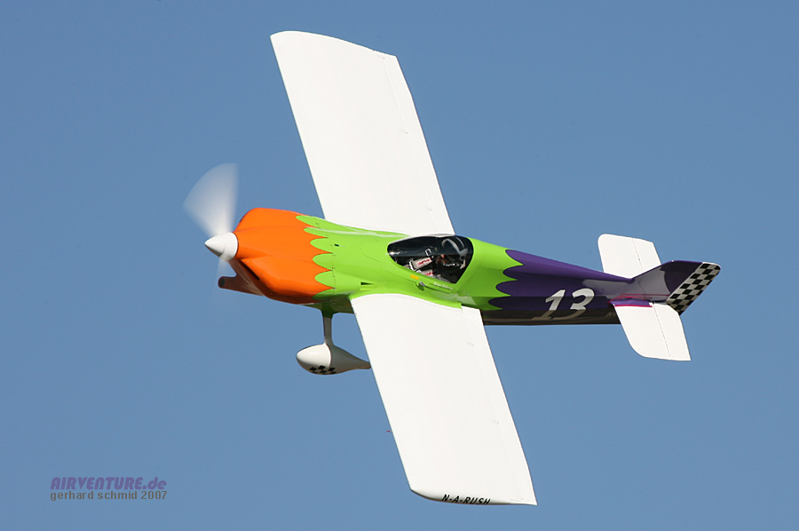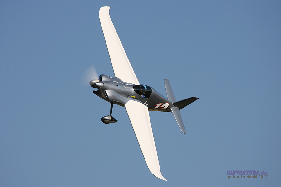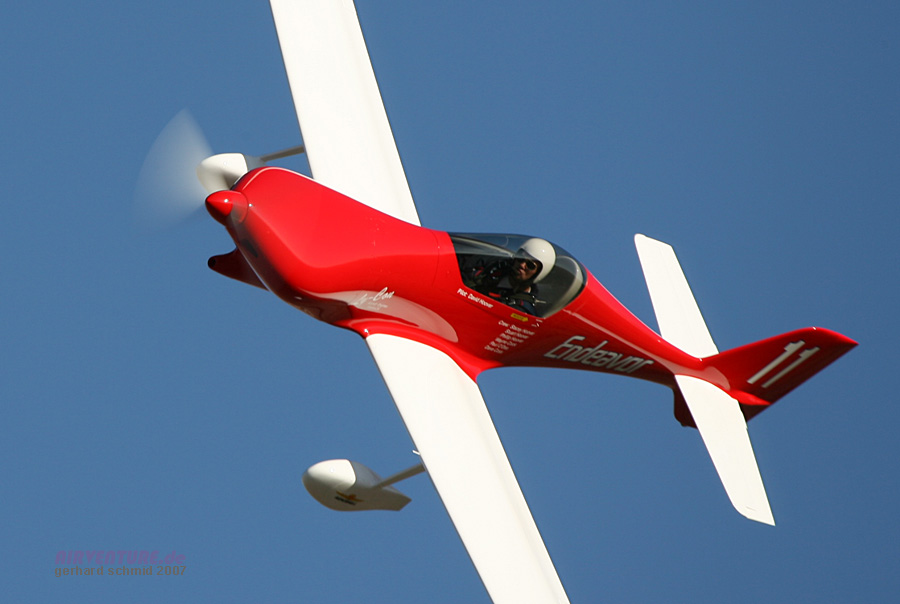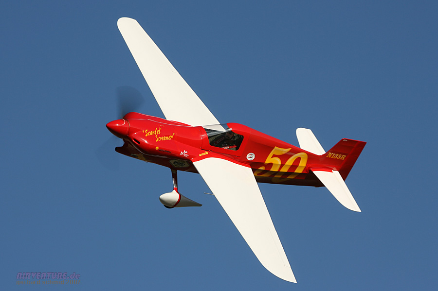 Das modernste Flugzeug der Formula One ist David Hoovers Arnold AR-6 #11 "Endeavor". David wurde der Formula One Class Sieger des Jahres 2007 mit 245,669 mph. |