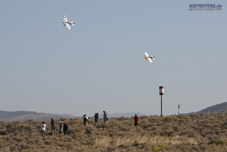 Früh am Morgen starten die Rennen der F1 Class noch lange vor dem offizielen Beginn der Veranstaltung. Tagsüber wird die heisse Wüstenluft zu turbulent für die leichten Maschinen. |