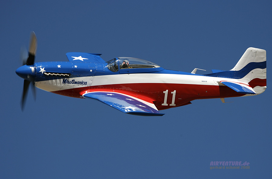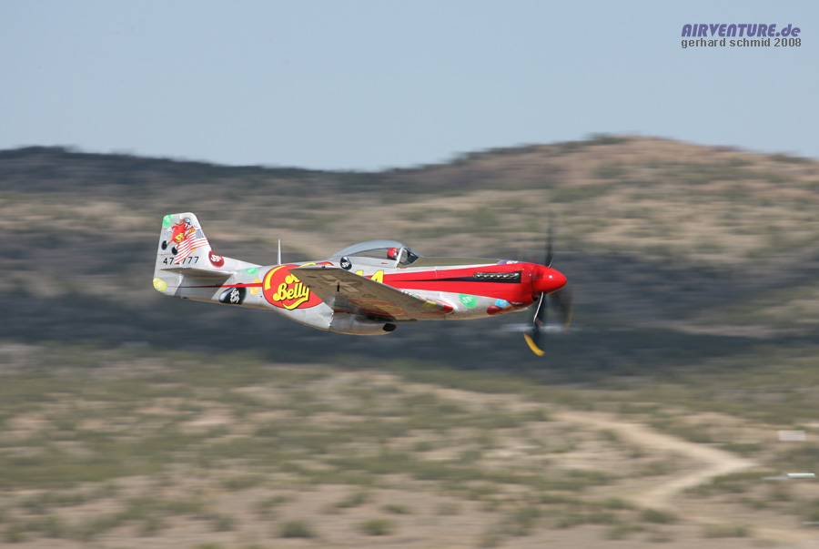 Von Kennern wird sie als eine der schönsten und in bestem Zustand befindlichen Mustangs überhaupt bezeichnet: Die TF-51 "Lady Jo" ist seit vielen Jahren regelmäßiger Teilnehmer und wurde 2008 von Rob Patterson mit 307,406 mph auf Platz 8 des Unlimited Silver geflogen. |