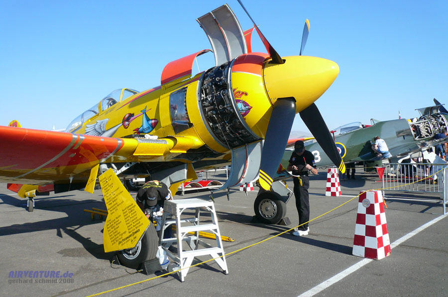 #114, die Hawker Sea Fury der Sanders-Brüder, schied am Freitag mit Motorschaden aus. CJ Stephens brachte die stark rauchende Maschine sicher zur Landung.